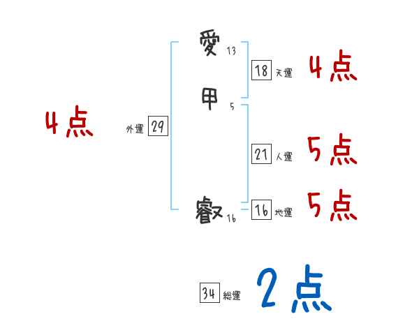 愛甲叡さんの画数の鑑定結果