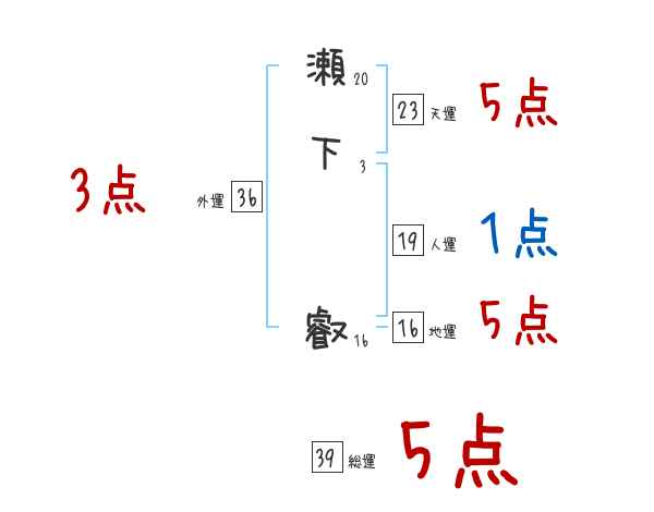 瀬下叡さんの画数の鑑定結果