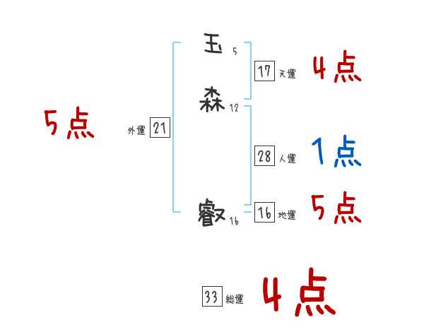 玉森叡さんの画数の鑑定結果
