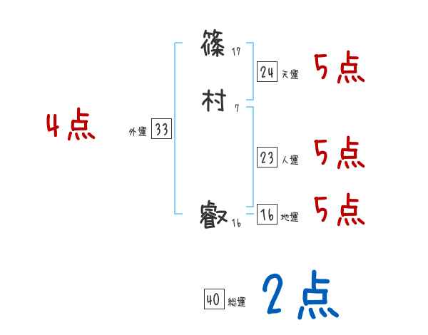 篠村叡さんの画数の鑑定結果