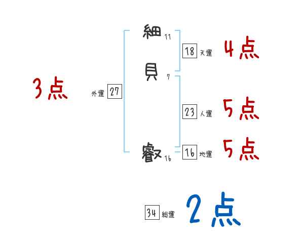細貝叡さんの画数の鑑定結果