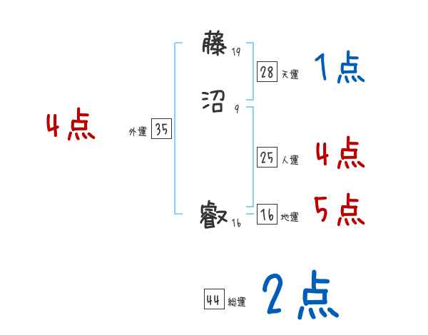 藤沼叡さんの画数の鑑定結果