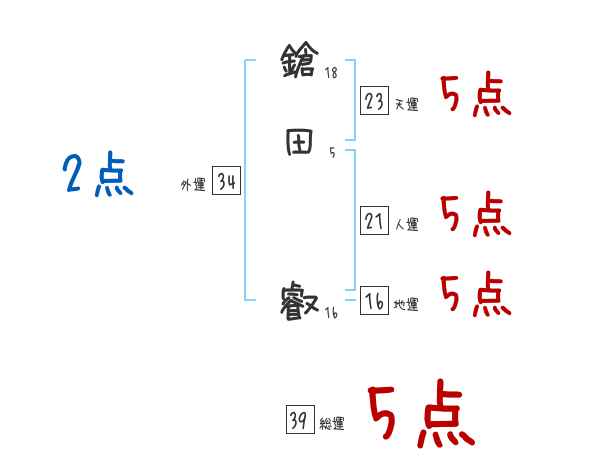 地運![]() | 鎗田叡さんの地運は16画の5つ星!人望が厚く大きく発展する。逆転成功が見える。 個性を表す基礎的な運勢です。性格形成や対人関係、行動力など家庭環境に影響されます。主に誕生してから20歳くらいまでの若年期の運勢を表します。 |