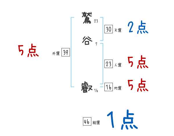 鷲谷叡さんの画数の鑑定結果