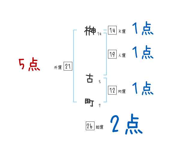 天運![]() | 榊古町さんの天運は14画の1つ星!人に対して優しいがストレスを溜め込みがち。人間関係のトラブルを避けるよう気をつけましょう。 家系が持つ宿命的な運勢を表します。祖先から受け継いだ苗字ですので自分の力が及びません。家柄を象徴します。 |