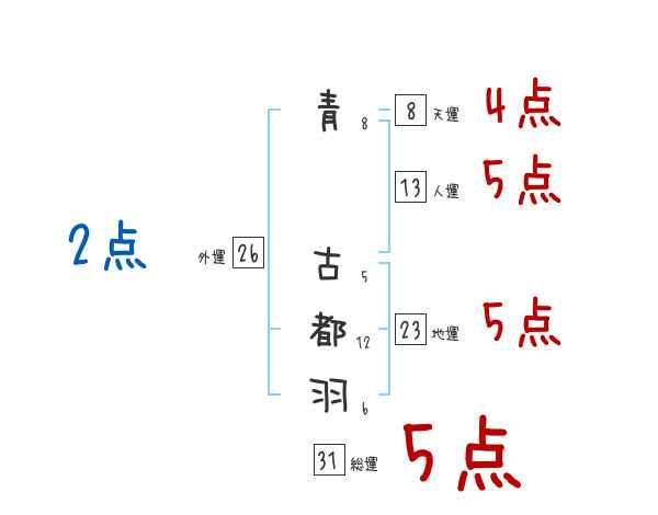 天運![]() | 青古都羽さんの天運は8画の4つ星!勤勉家。根気強く努力し成功する。忍耐力がある。 家系が持つ宿命的な運勢を表します。祖先から受け継いだ苗字ですので自分の力が及びません。家柄を象徴します。 |