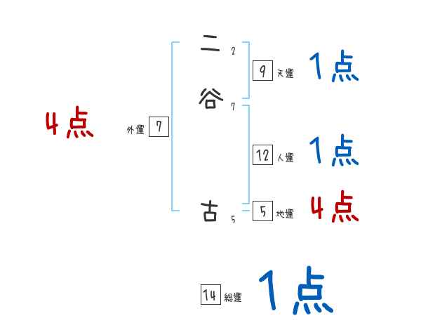 二谷古さんの画数の鑑定結果