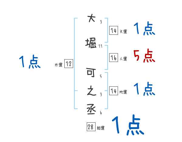 大堀可之丞さんの画数の鑑定結果