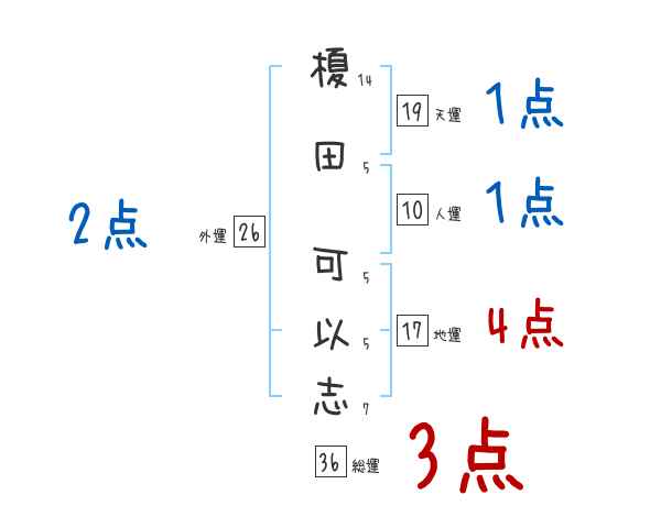 外運![]() | 榎田可以志さんの外運は26画の2つ星!波瀾万丈かも。信頼できる人を大事にしましょう。 生活面を象徴する運勢です。外部から受ける影響力を表し、結婚運、家庭運や職場、環境への順応性を表します。 |