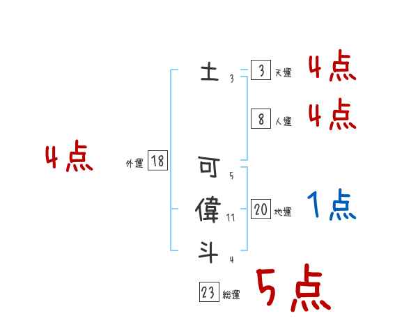 土可偉斗さんの画数の鑑定結果
