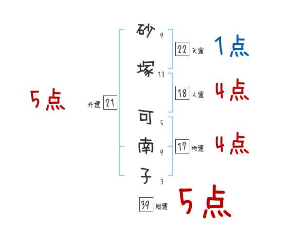 砂塚可南子さんの画数の鑑定結果