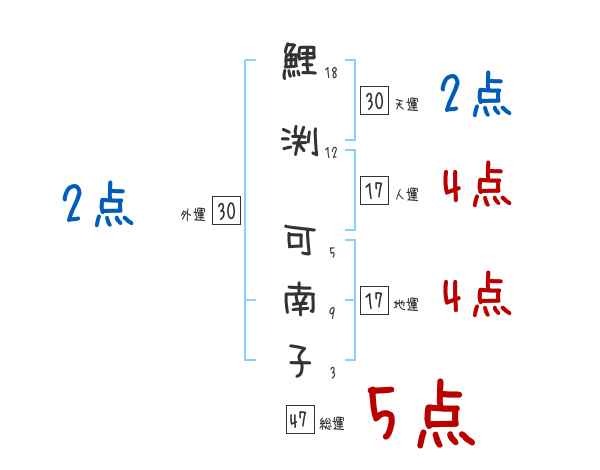 天運![]() | 鯉渕可南子さんの天運は30画の2つ星!浮き沈みの激しさに注意しましょう。 家系が持つ宿命的な運勢を表します。祖先から受け継いだ苗字ですので自分の力が及びません。家柄を象徴します。 |