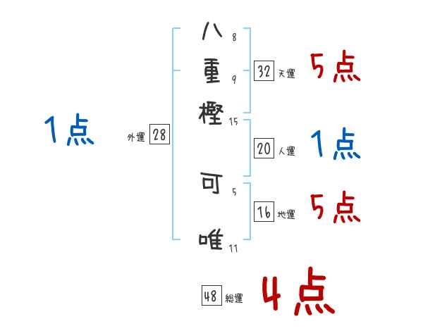 天運![]() | 八重樫可唯さんの天運は32画の5つ星!柔軟性があり成功する。チャンスが多く金運が良い。 家系が持つ宿命的な運勢を表します。祖先から受け継いだ苗字ですので自分の力が及びません。家柄を象徴します。 |