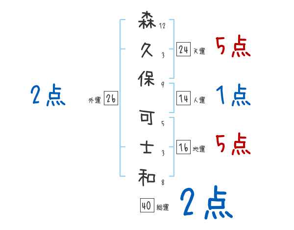 天運![]() | 森久保可士和さんの天運は24画の5つ星!家庭運が良く順調な人生。金運にも恵まれる。 家系が持つ宿命的な運勢を表します。祖先から受け継いだ苗字ですので自分の力が及びません。家柄を象徴します。 |
