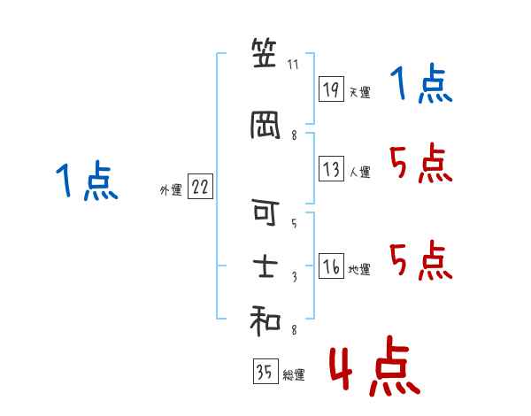 総運![]() | 笠岡可士和さんの総運は35画の4つ星!温厚な性格で感受性が高い。穏和な性格で人望が厚い。 あなたの人生を表す1番重要な運勢です。生涯を通じて影響する総合運となり、主に50歳以降の晩年期に影響を及ぼします。 |