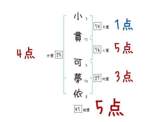 小貫可夢依さんの画数の鑑定結果