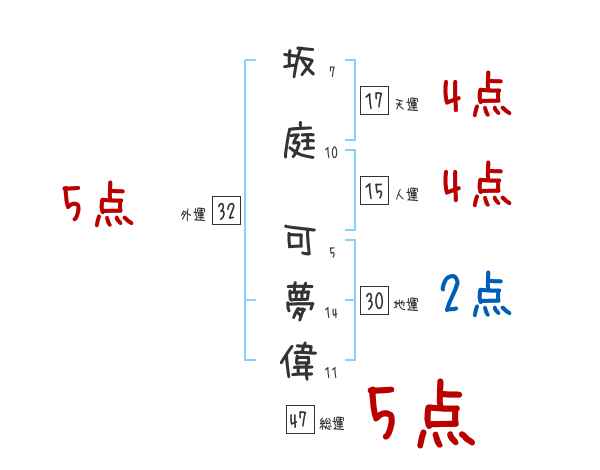 坂庭可夢偉さんの画数の鑑定結果