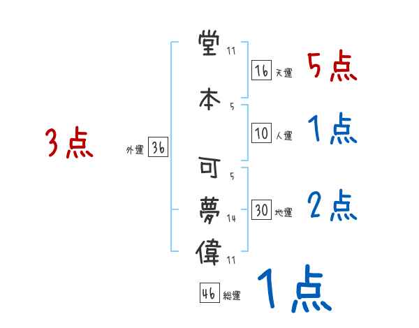 堂本可夢偉さんの画数の鑑定結果