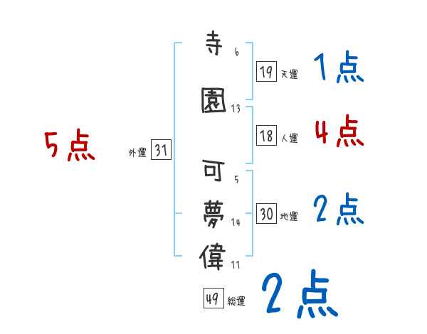 寺園可夢偉さんの画数の鑑定結果