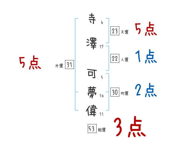 寺澤可夢偉さんの画数の鑑定結果