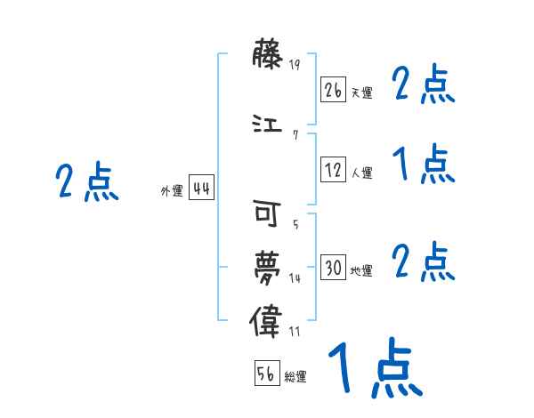 藤江可夢偉さんの画数の鑑定結果