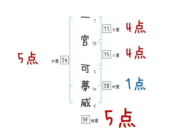 一宮可夢威さんの総運は39画の5つ星
