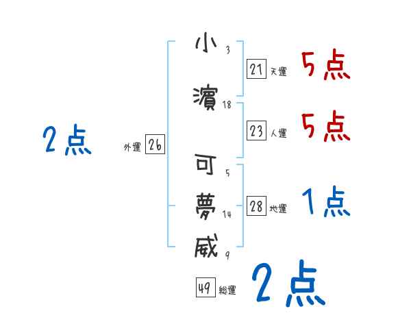 小濵可夢威さんの画数の鑑定結果