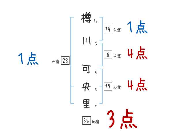 天運![]() | 樽川可央里さんの天運は19画の1つ星!優れた才能を持ちますが、協調性が足りないことも。周りの人と協力する事を意識しましょう。 家系が持つ宿命的な運勢を表します。祖先から受け継いだ苗字ですので自分の力が及びません。家柄を象徴します。 |