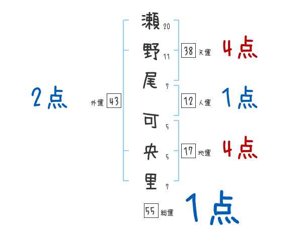 瀬野尾可央里さんの画数の鑑定結果