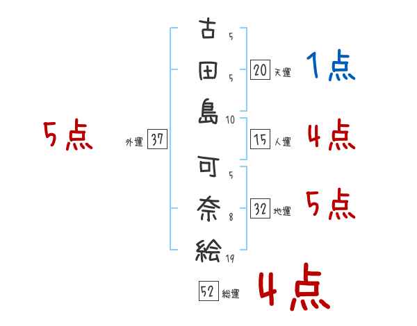 古田島可奈絵さんの画数の鑑定結果