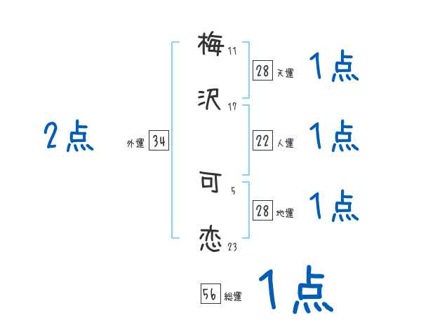 梅沢可恋さんの画数の鑑定結果