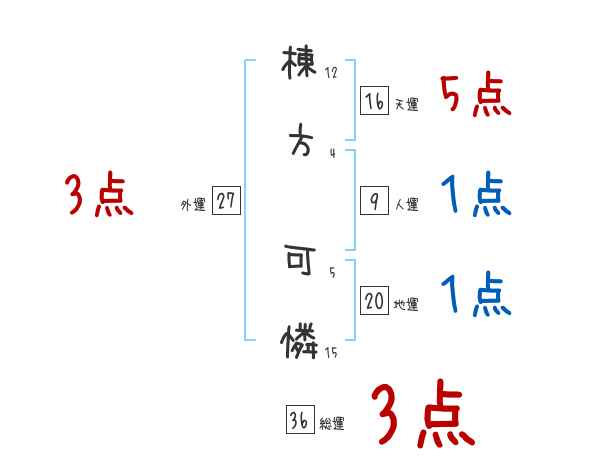 棟方可憐さんの画数の鑑定結果