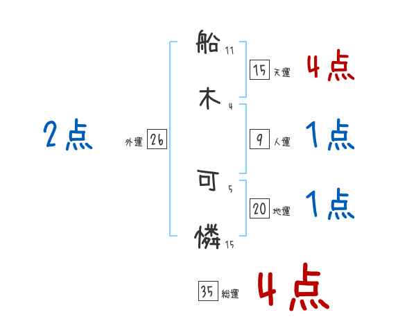 天運![]() | 船木可憐さんの天運は15画の4つ星!人徳があり出世する。順調に物事を進め円満な人生。 家系が持つ宿命的な運勢を表します。祖先から受け継いだ苗字ですので自分の力が及びません。家柄を象徴します。 |