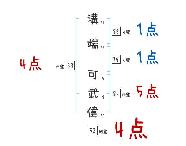 溝端可武偉さんの画数の鑑定結果