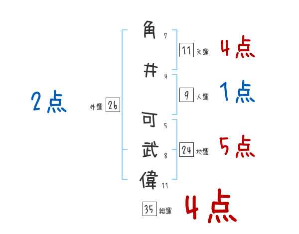 角井可武偉さんの画数の鑑定結果