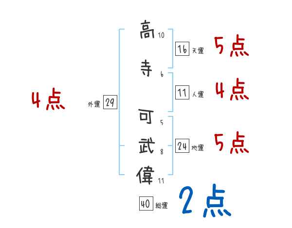 高寺可武偉さんの画数の鑑定結果