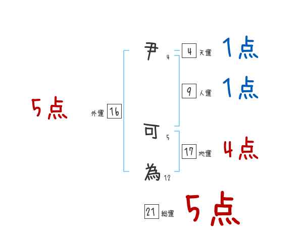 天運![]() | 尹可為さんの天運は4画の1つ星!感情が不安定で苦労するかも。周囲との協調を心掛けましょう。 家系が持つ宿命的な運勢を表します。祖先から受け継いだ苗字ですので自分の力が及びません。家柄を象徴します。 |