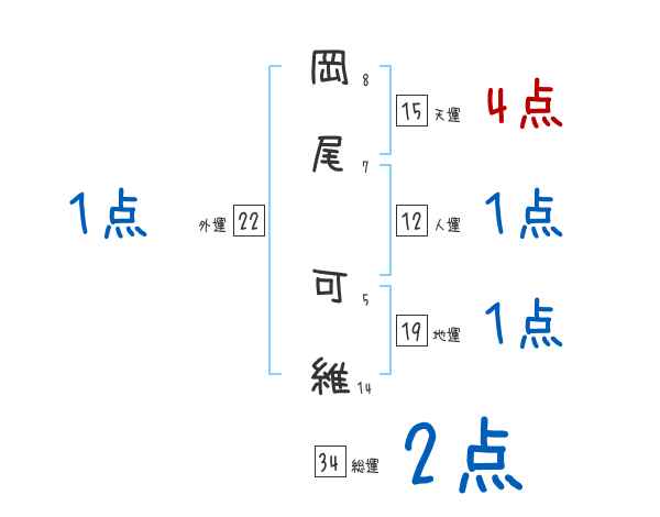 岡尾可維さんの画数の鑑定結果