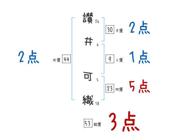讃井可織さんの画数の鑑定結果