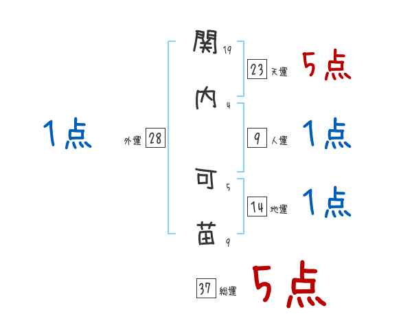 関内可苗さんの画数の鑑定結果