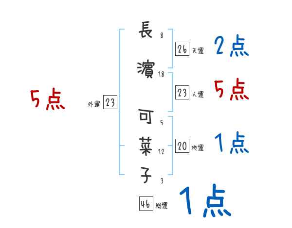 外運![]() | 長濵可菜子さんの外運は23画の5つ星!想像力に優れ活力がある。一代で成功し名誉を手に入れる。 生活面を象徴する運勢です。外部から受ける影響力を表し、結婚運、家庭運や職場、環境への順応性を表します。 |
