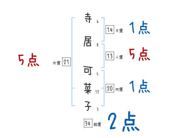 寺居可菜子さんの画数の鑑定結果