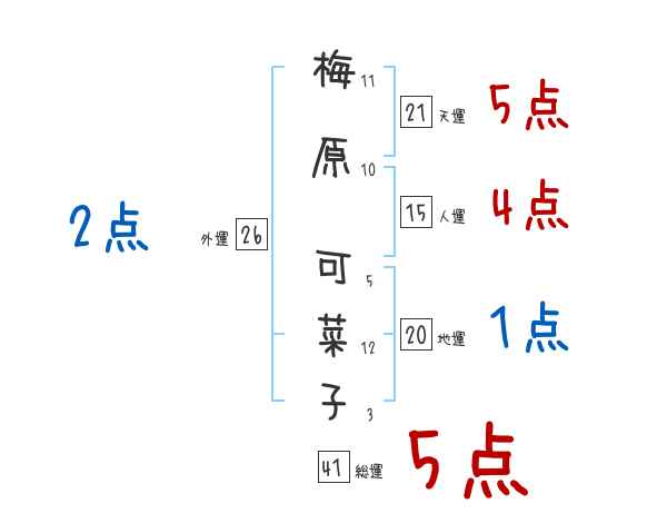 外運![]() | 梅原可菜子さんの外運は26画の2つ星!波瀾万丈かも。信頼できる人を大事にしましょう。 生活面を象徴する運勢です。外部から受ける影響力を表し、結婚運、家庭運や職場、環境への順応性を表します。 |