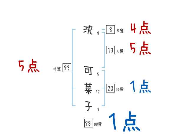 沈可菜子さんの画数の鑑定結果
