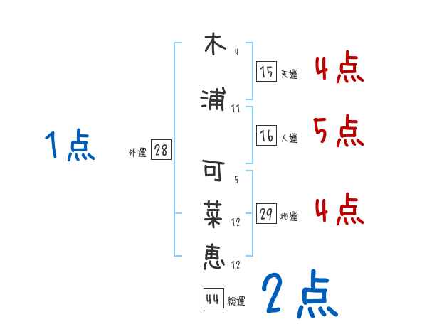 外運![]() | 木浦可菜恵さんの外運は28画の1つ星!家庭環境に注意。スポーツで活躍できる能力があるかも。 生活面を象徴する運勢です。外部から受ける影響力を表し、結婚運、家庭運や職場、環境への順応性を表します。 |