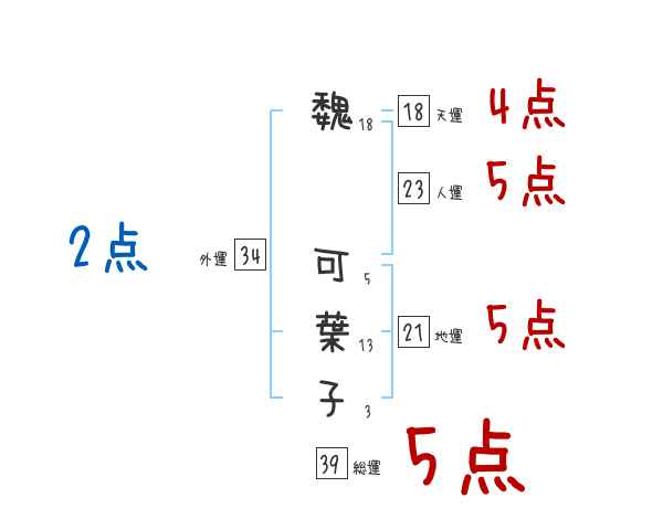 魏可葉子さんの画数の鑑定結果
