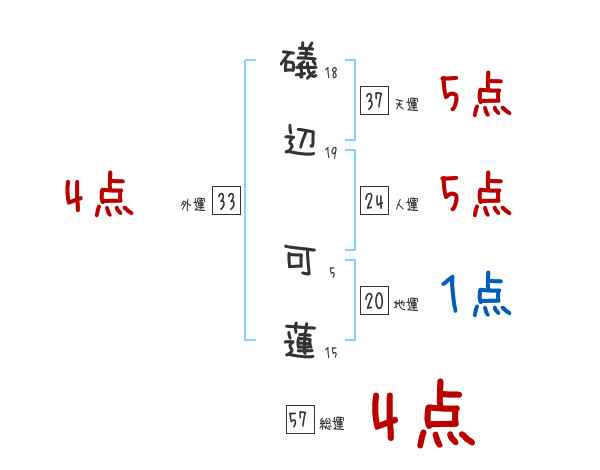 礒辺可蓮さんの画数の鑑定結果