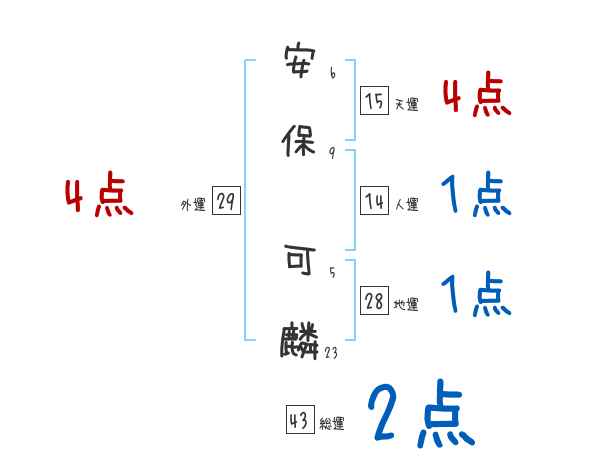 安保可麟さんの画数の鑑定結果