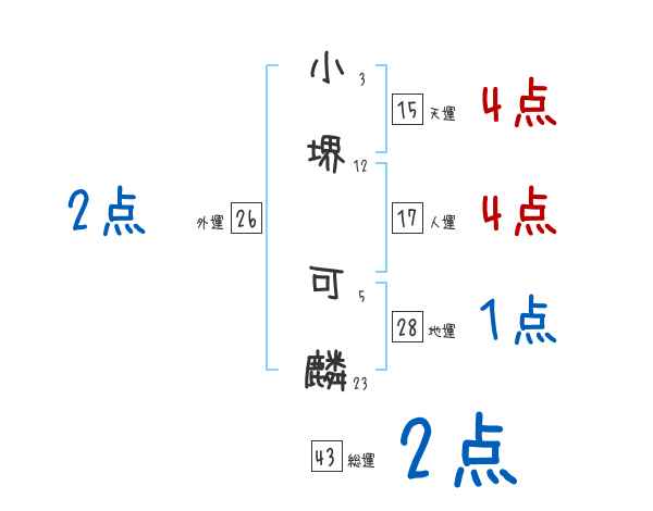 小堺可麟さんの画数の鑑定結果