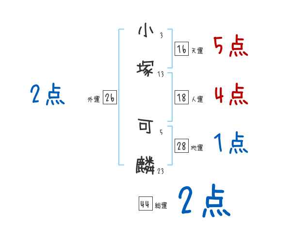 小塚可麟さんの画数の鑑定結果